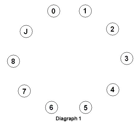 Firstly we need to determine the entire list of answers given to Jocelyn. This is simple. The maximum number of people a person could shake hands with is 8. Remember there are 10 people who can shake hands and you do not shake with yourself or your partner, so you are left with 8. If Jocelyn asks 9 people then the nine different answers must be {0, 1, 2, 3, 4, 5, 6, 7, 8}. (1 is of course the person who shook only one hand, 2 is the person who shook two hands etc etc). The ten people can then be represented by using a graph with {J, 0, 1, 2, 3, 4, 5, 6, 7, 8} the set of nodes, where J is Jocelyn (Graph 1) .